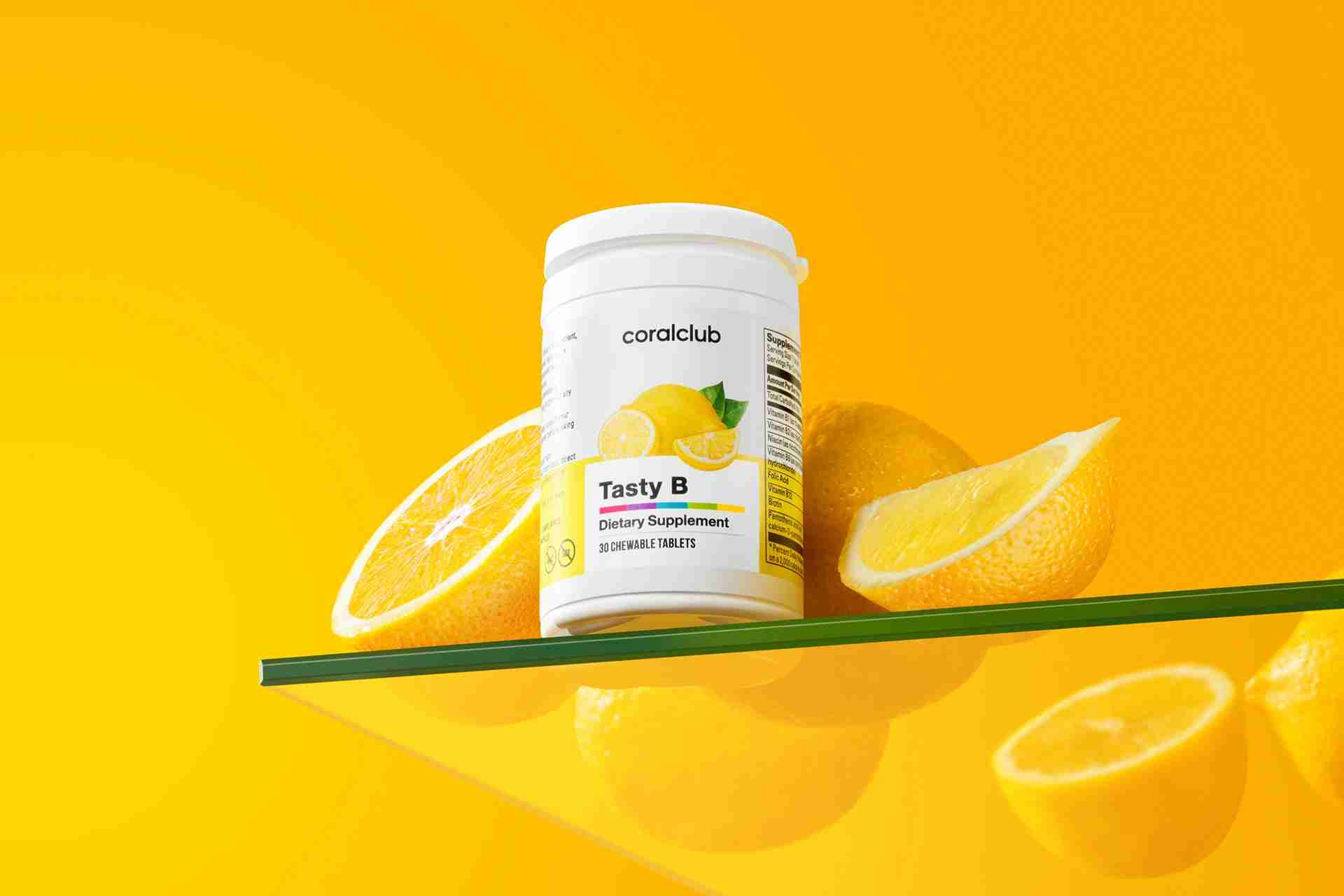 (chlorhydrate de thiamine), vitamine B2 (riboflavine), acide folique (acide ptéroylmonoglutamique), biotine (D-biotine), autres ingrédiensIngrédient actifContenu dans une portion journalière (1 comprimé) %de la AJR* Niacine16 mg 100% Acide pantothénique6 mg 100% Vitamine B122,5 μg 100% Vitamine B61,4 mg 100% Thiamine1,1 mg 100% Riboflavine1,4 mg 100% Acide folique200 μg 100% Biotine50 μg 100% Autres ingrédiens: édulcorant: sorbitol**, correcteur d'acidité: acide citrique, arôme naturel citron, anti-agglomérant: stéarate de magnésium, édulcorant: glycosides de stéviol. **Une consommation excessive peut avoir des effets laxatifs *AJR – apports journaliers recommandés Poids du contenu: 30 g